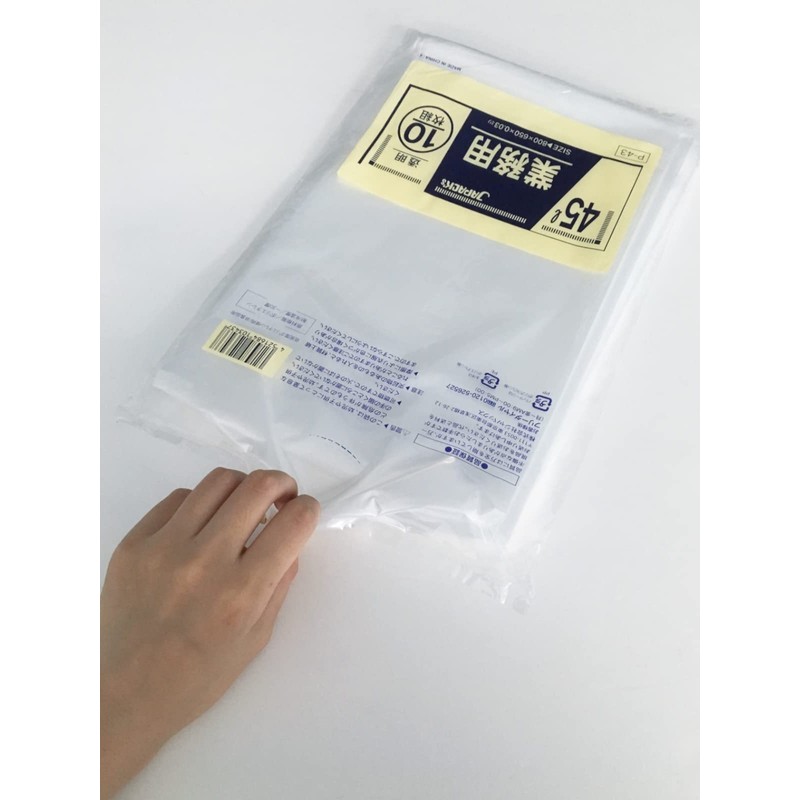 Japax P-43 Garbage Bags, Transparent, 1.6 gal (45 L), Height 31.5 x Width 2.6 inches (80 x 65 x 0.03 mm), Standard Plastic Bags, Smooth Type, 10 Pieces
