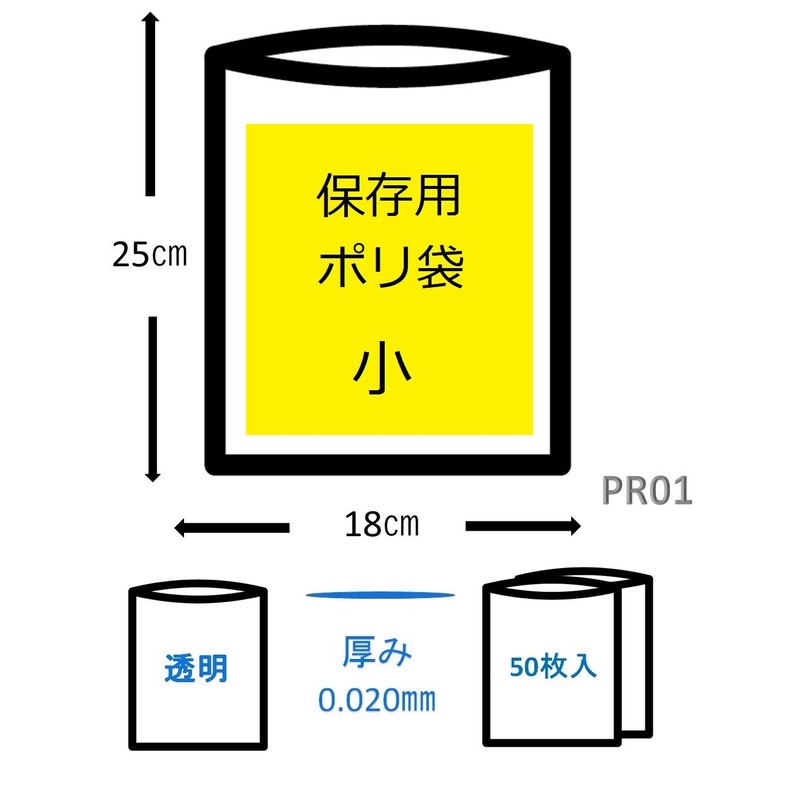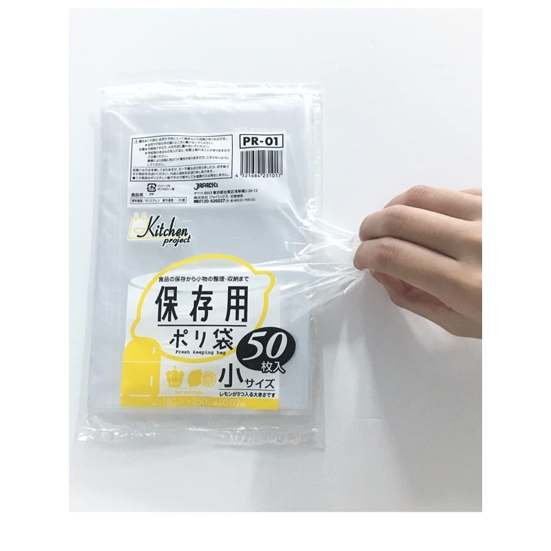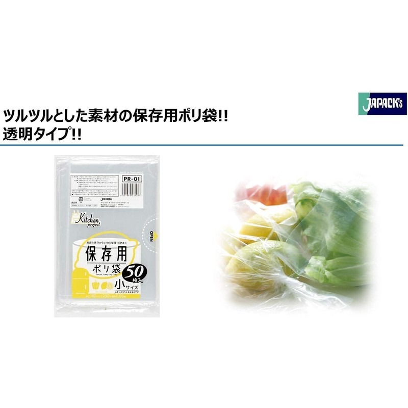 Japax PR01 Storage Bags, Transparent, Width 7.1 x Height 9.8 x Thickness 0.008 inches (18 x 25 x 0.02 mm), 50 Pieces, For Kitchen Projects, Storage, Plastic Bags, Small Size