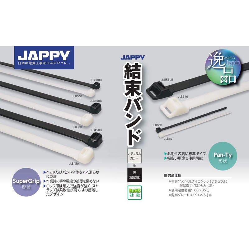JAPPY Grip Bands Cable Ties JLB 80-100 Pack of 100 White