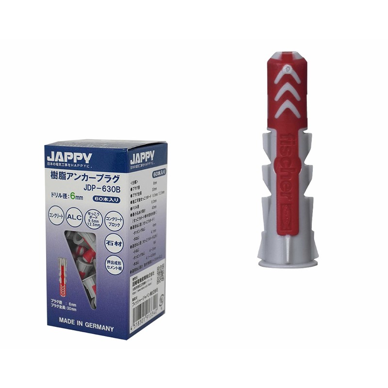 JAPPY JDP-630B Resin Anchor Plug Drill Diameter 0.2 inch (6 mm), Pack of 60
