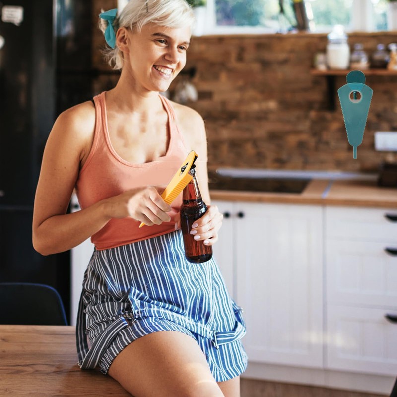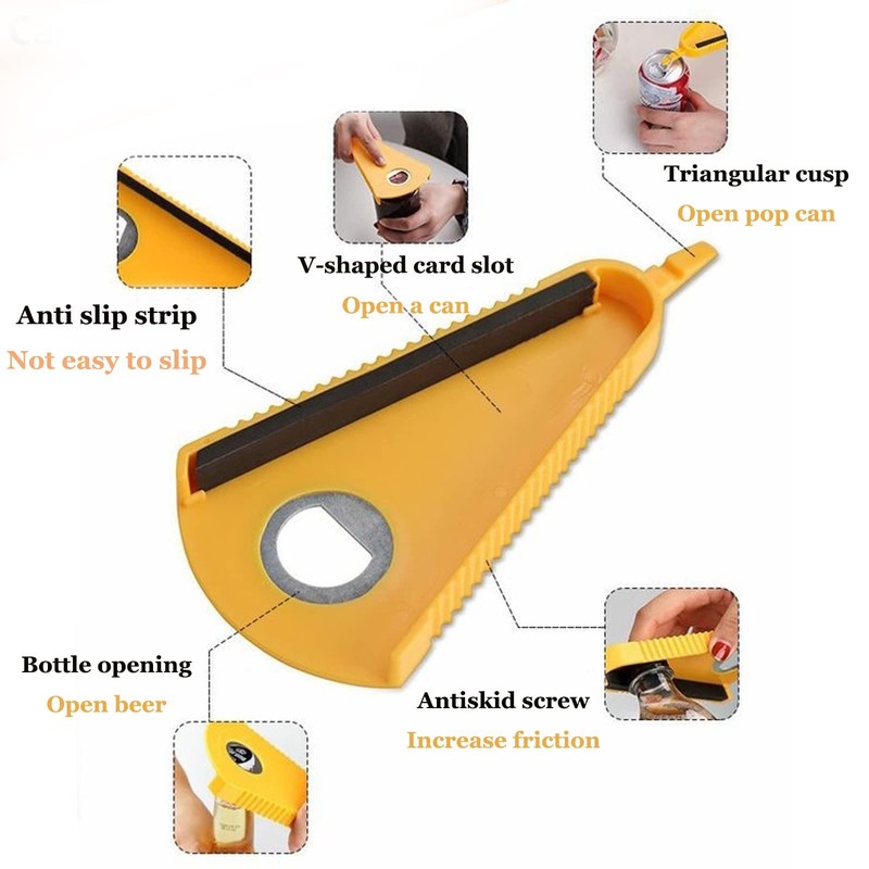 - [ V Style Design ] Can opener design conforms to the human body's artificial structure, and can opening is easy and effortless. Anti slip rubber strip is installed on the side, which is not easy to slip. A spiral round hole is set in the middle, which is used when opening beer. The tail is designed with a triangular tip, which makes it easy to pry cans. Moreover, the screw type size with a diameter of 3-7cm is set, which is suitable for covers of different sizes.