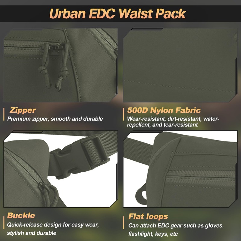 Jarocye Tactical Fanny Pack for Men Women with Concealed Carry Compartment, EDC Waist Bag with Adjustable Belt and Zippered Pockets, Lightweight and Compact