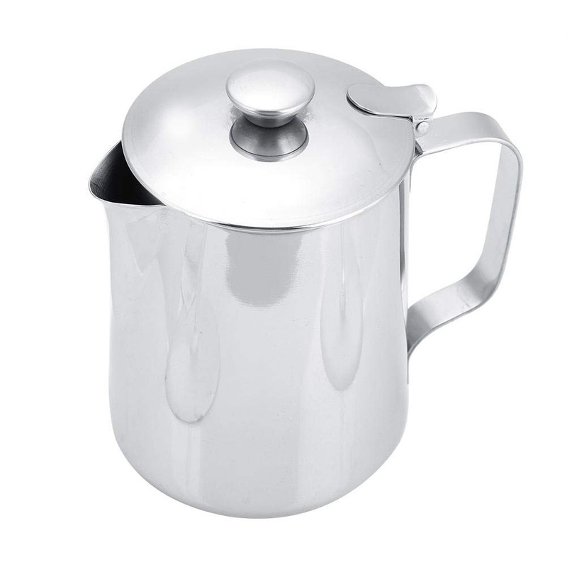 Jarra de Acero Inoxidable Taza de Café Taza de Leche Jarra Jarra con Tapa para Latte Coffee Art para Oficina Cocina(600 ml)