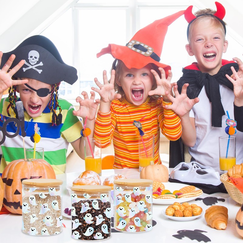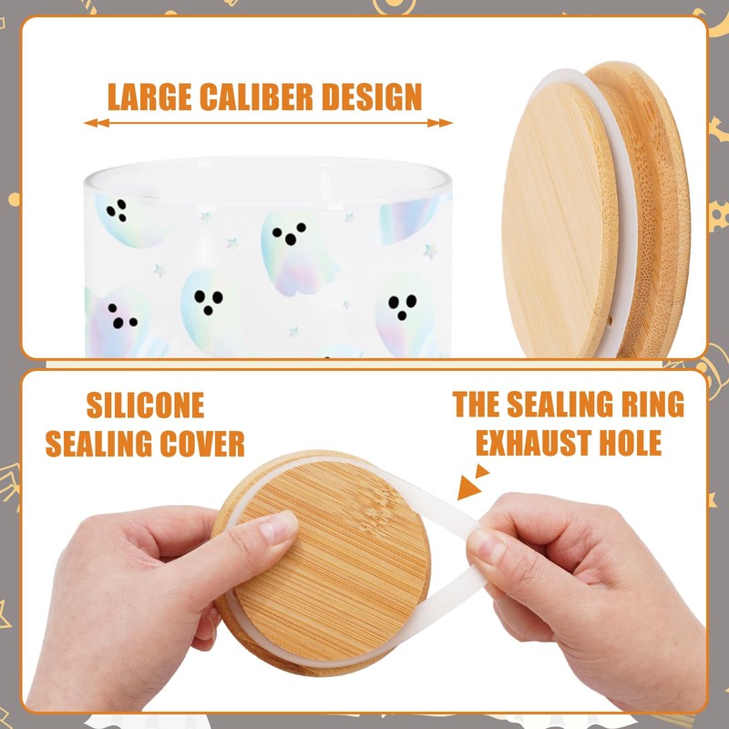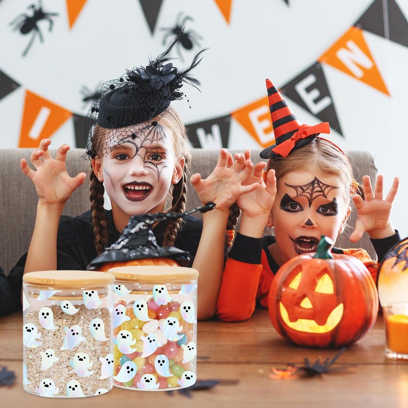 Our glass storage jars, with holographic ghost designs, exquisite and eye-catching, and glass material is reliable and safe, great decorations for Halloween.