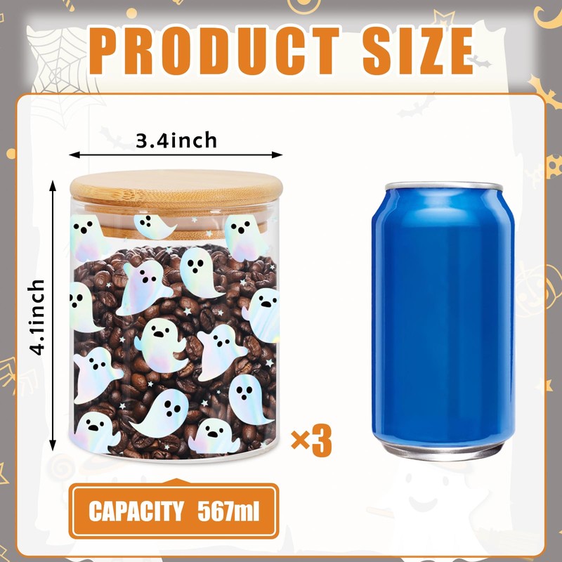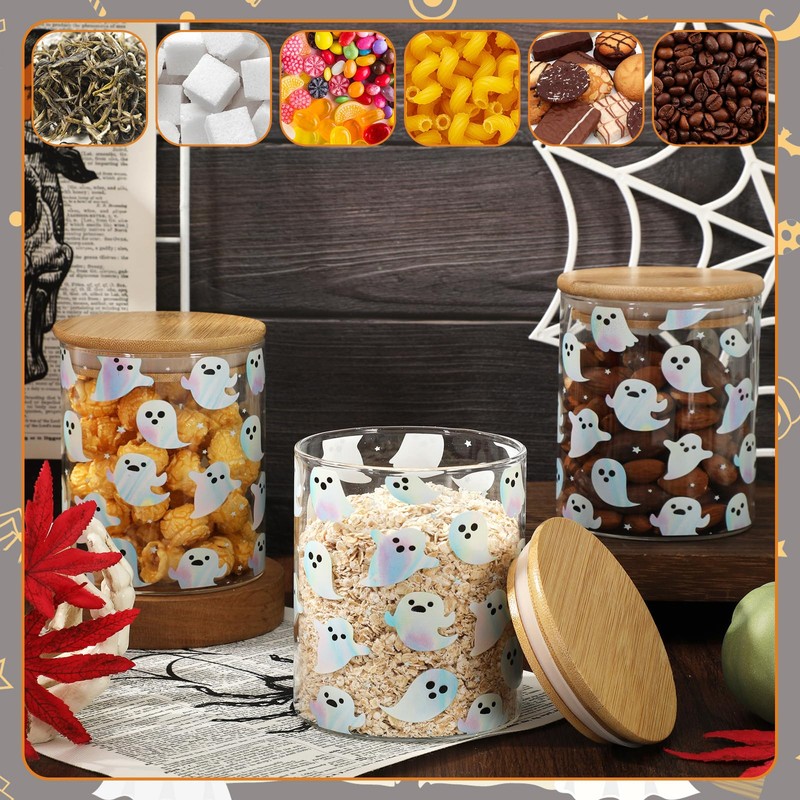 • CUTE DESIGN: Our glass storage jars adopt transparent design, designed with holographic ghost patterns, exquisite and festive, which can elevating your aesthetic taste for the kitchen decor