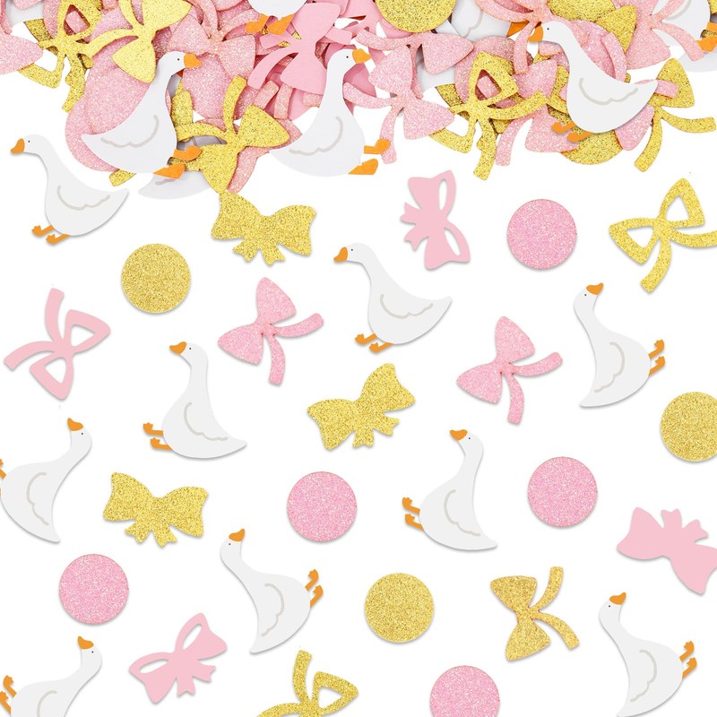 JarThenaAMCS 500Pcs Pink Bow Silly Goose Confetti 18 Designs Glitter Coquette Farm Animal Theme Paper Table Confetti Scatters for Girls Birthday Bridal Baby Shower Party Decor