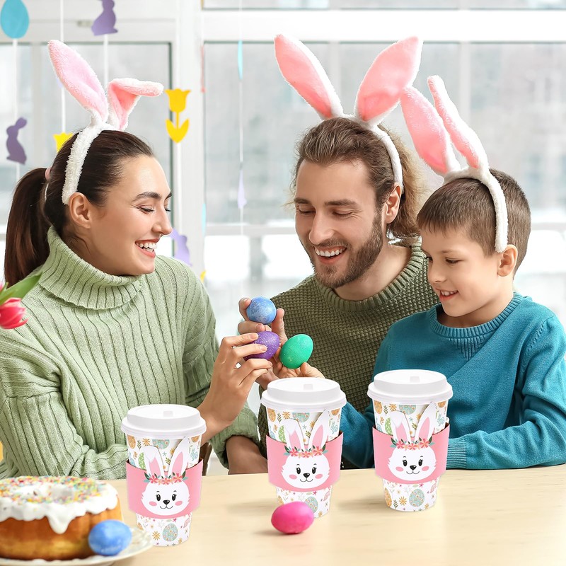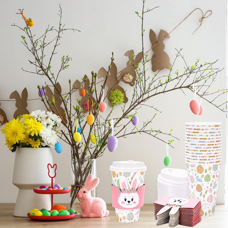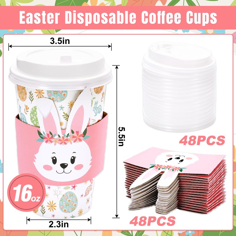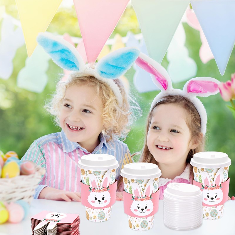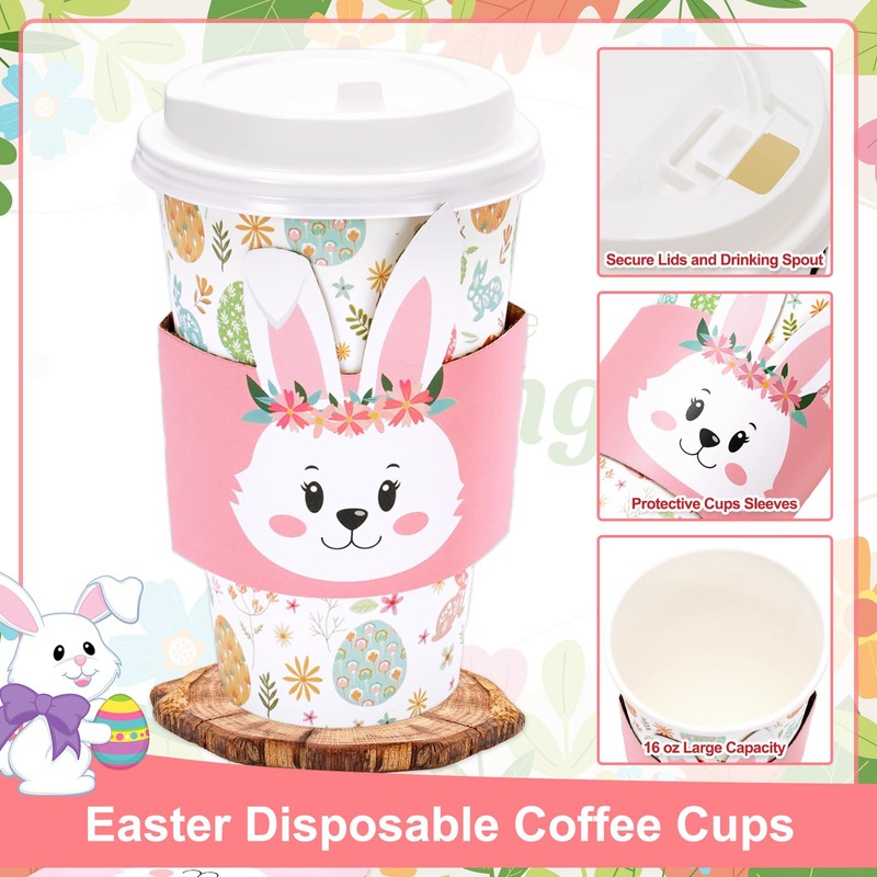 - EASTER DESIGN: The paper cups match the theme of Easter, printed with pastel color Easter egg and bunny patterns, and the cup sleeves are printed with super cute rabbit image, ideal to use for this Easter holiday.