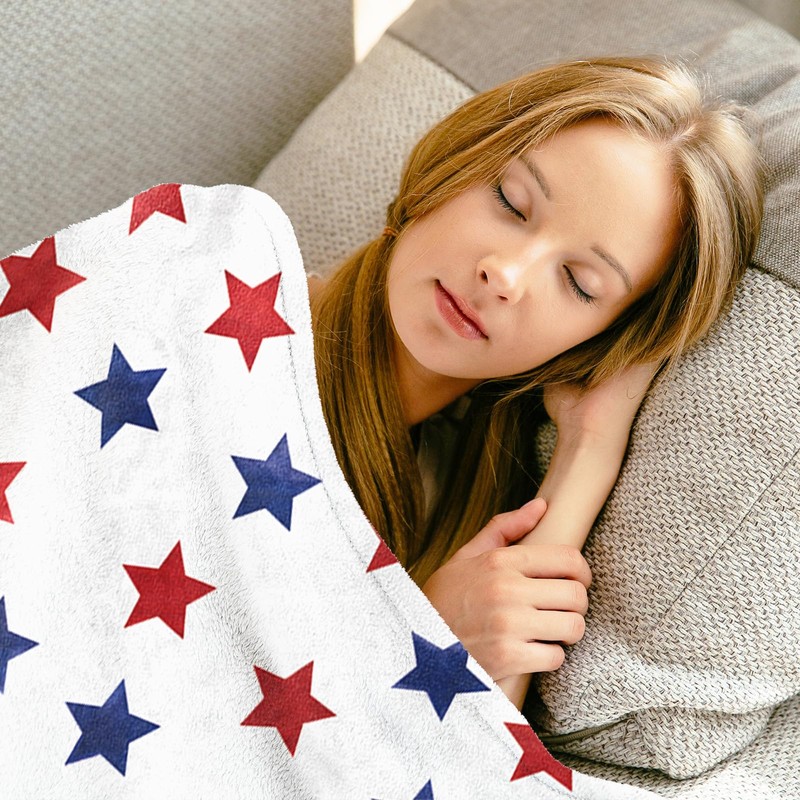 - PATRIOTIC DESIGN: Our fuzzy blanket featuring patriotic theme, patterned with red and blue stars, delicate and festive, suitable for many occasions