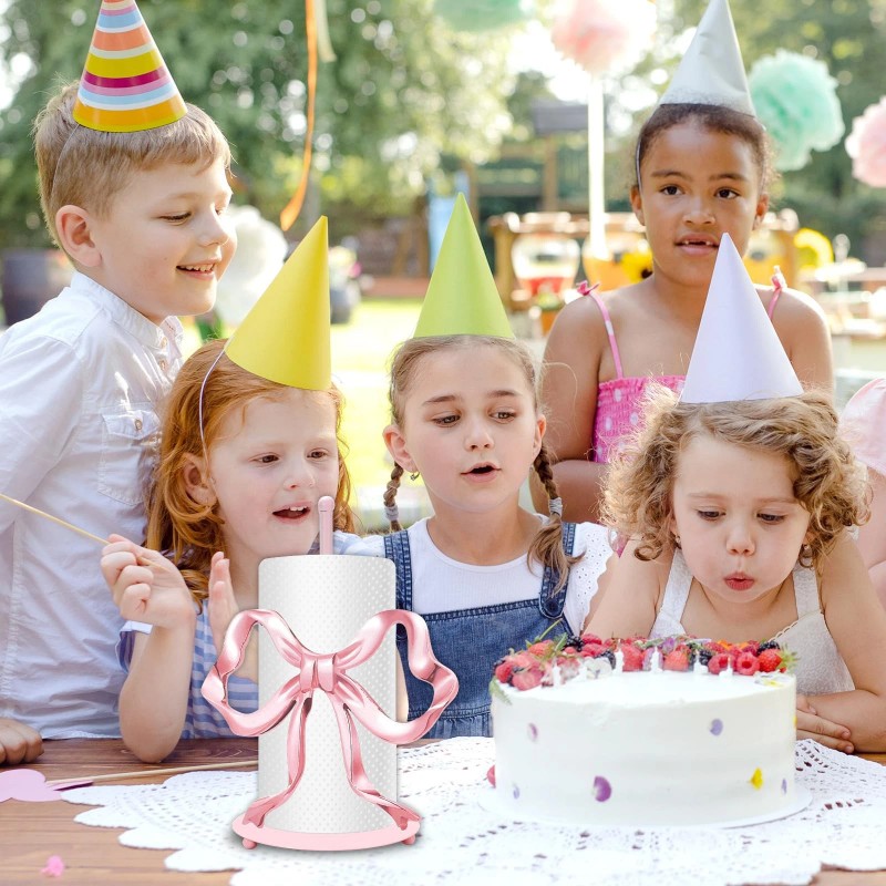 The metal paper holder is designed with pink bow knot, exquisite and eye-catching, which is a great decoration for your home or party.
