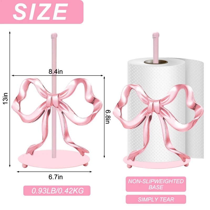 DELICATE DESIGN: You will receive a metal paper towel holder, decorated with pink bow knot, exquisite and practical, will match perfectly with any accessories in the kitchen