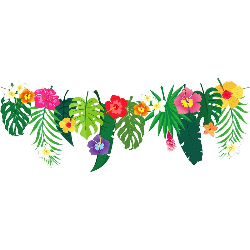 JarThenaAMCS Tropical Flower Garland Luau Hibiscus Palm Leaves Paper Banner Hawaiian Aloha Party Garland for Luau Birthday Summer Beach Pool Party Decor