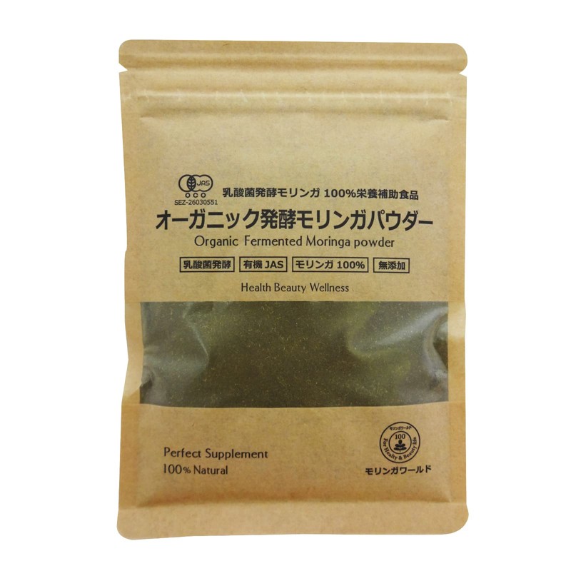 - 簡単説明:オーガニックモリンガの乳酸菌発酵モリンガパウダー(有機JAS)。発酵モリンガ青汁、モリンガ発酵粉末茶、スムージーに入れる、サラダやヨーグルトにかける等で美味しくお召し上がり頂けます。発酵モリンガパウダーは美容サプリメントとしてのビタミンA・Eやβ-カロテン等のファイトケミカル豊富。発酵により必須アミノ酸、BCAAが大幅増量。ORAC値(活性酸素吸収能力)は野菜の10-100倍。ビタミンAはケールの18倍、ビタミンEは小松菜の173倍。子供から高齢者の健康と美容、スポーツする方(競技アスリート含)、糖質制限中、ダイエット中の栄養サポート、ファスティングに超おススメ。オーガニック・乳酸菌発酵・モリンガ100%・完全無添加。【モリンガワールド】ブランド