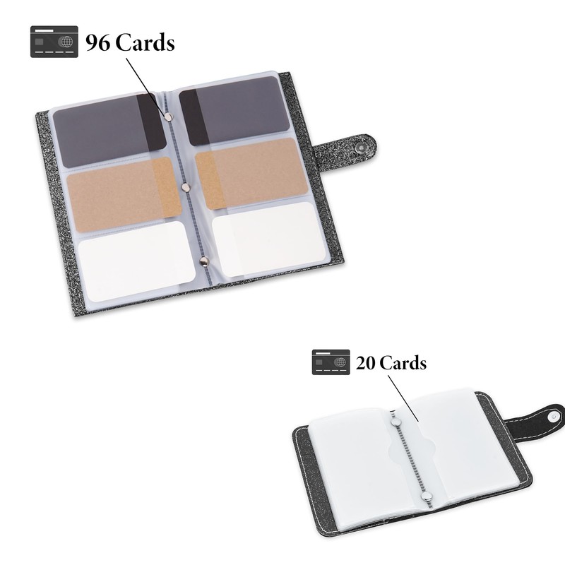Jasenna 2 Pieces Business Card Holder,PU Leather Business Card Case Pocket Business Name Card Holder with Magnetic Shut Credit Card ID Case/Wallet Organizer Case(2-Set-Black)