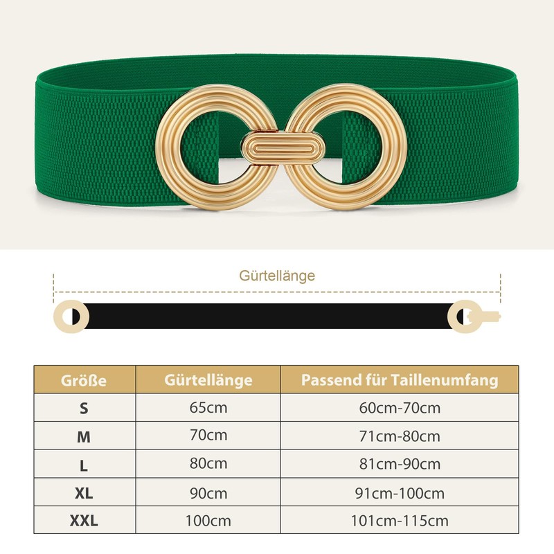 JasGood Women's Wide Elastic Waist Belt Stretchy Belt for Dresses Hip Belt Golden Buckle Belt for Women, Green