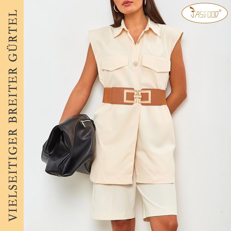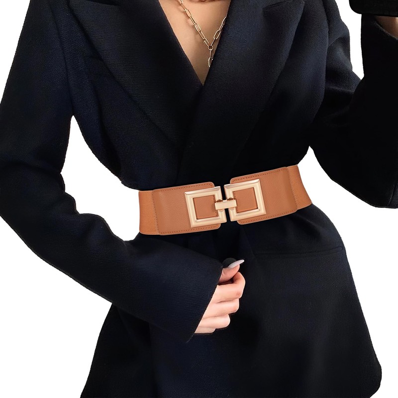 - Versatile wide belt: the women's wide waist belt has an elegant design and a stylish golden buckle that highlights the charm of any outfit. The fashionable wide women's belt has a golden interlocking buckle that gives dresses, shirts, sweaters and jacket coats a touch of elegance.