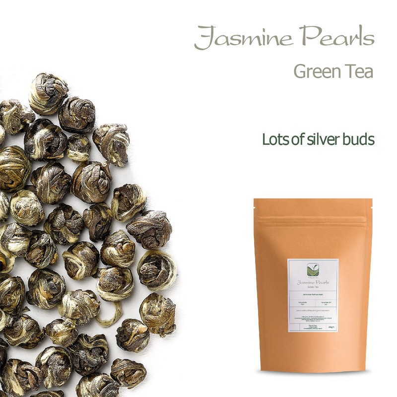 Jasmin Perle Grüntee - Jasmine Dragon Pearl China Grüner Tee - Phoenix Dragon Pearls Chinese Tee - Lose Blätter Tea Jasmin Tee Jasmintee Bio Grüne Tee Jasmin Pearls Jasmintee Perlen Jasmine Pearls