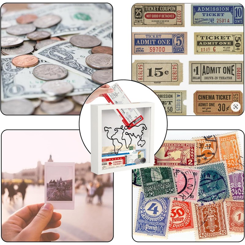 - ️ Ticket Shadow Box with Slot:The heartbeat of adventure lies in every souvenir, ticket and postcard. Our adventure archive box, available in medium (8 x 8 inches) and large (12 x 12 inches), brings it back to life. Hang them on the wall or place them on a table to revive forgotten drawers.