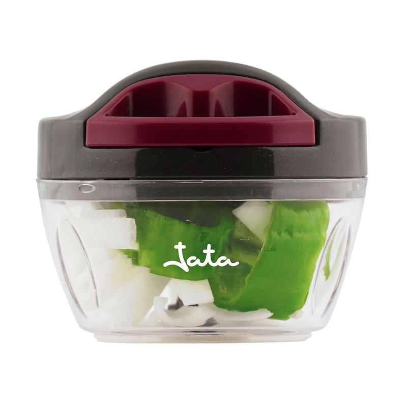 - The manual chopper with rope allows you to chop all kinds of food (garlic, onions, tomatoes, leeks, etc.) thanks to its three-stage stainless steel blade. In addition, it also includes a scoop that allows you to whip and emulsify to make delicious sauces or creams.