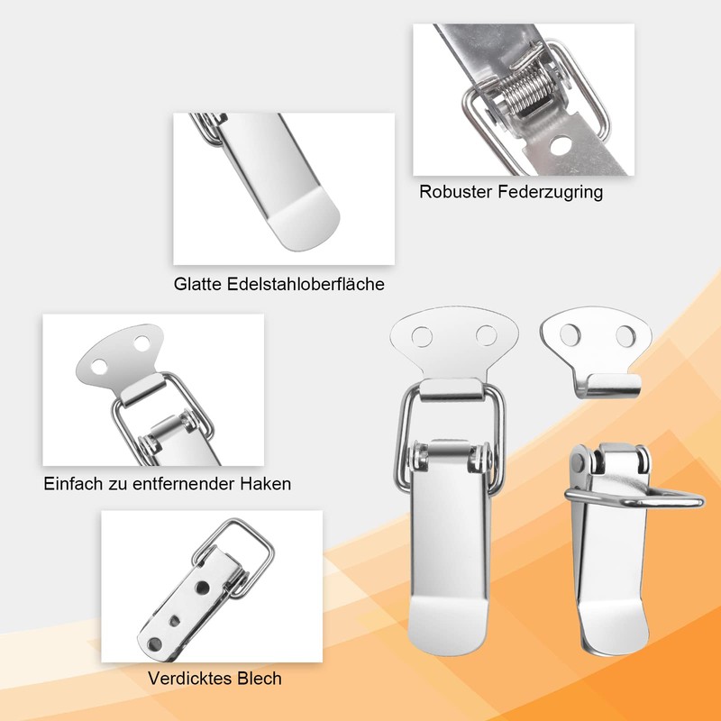 JatilEr Pack of 10 Stainless Steel Lever Lock Box Lock Snap Lock Cap Lock Stainless Steel Clasp Hasp for Case Box, Toolbox, Drawer, Cupboard, Chest (Silver)