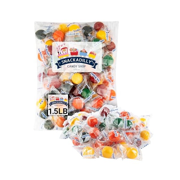 Jawbreakers Candy Balls - 1.5Lbs Assorted Fruit Flavored Hard Candy - About 160 Wrapped Jaw Breakers Per Bag - Freshly Packed By Snackadilly