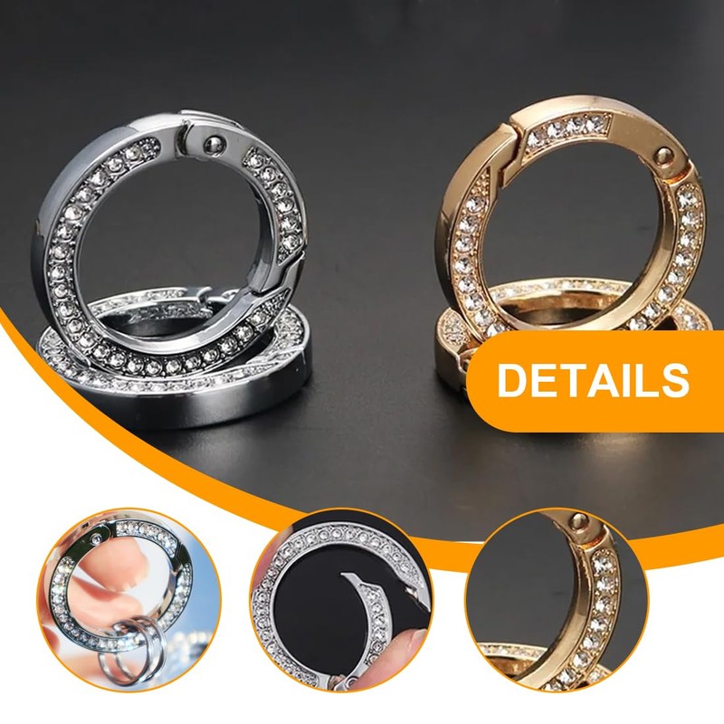 JAWUZ Pack of 6 Round Carabiner Large 35 mm - Shiny Metal Carabiner Hooks with Rhinestones - Spring Clasp Ring Carabiner for Key Chain Bags Jewellery DIY Crafts - Silver & Gold