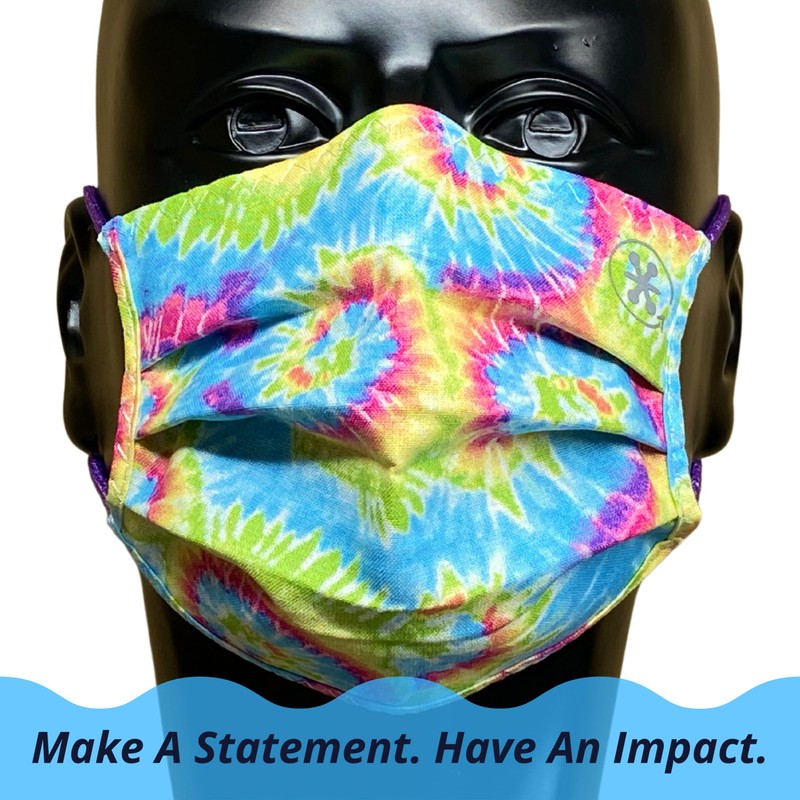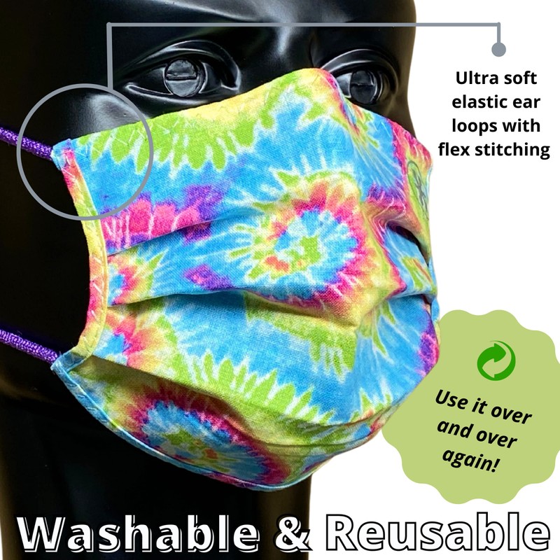 JaxMask® | Girls Colorful Tie Dye Pleated Cloth Face Mask | Youth Kids 2 Layer Washable & Reusable Face Covering | ‘FlowerChild Collection’ (Single)