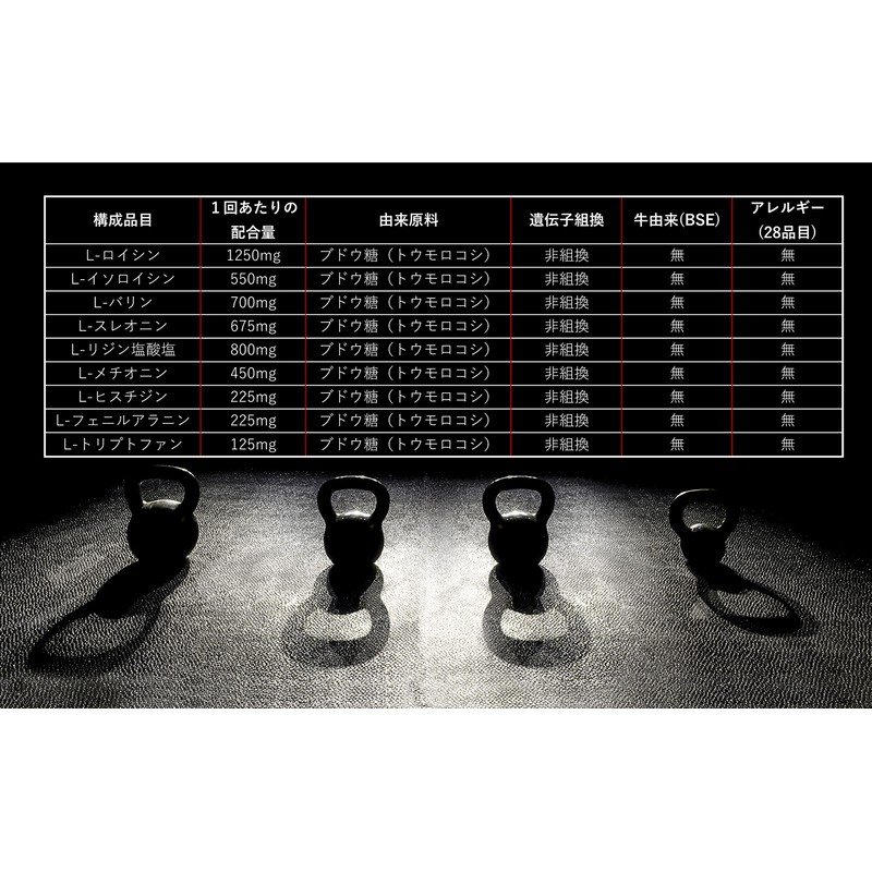 • 1食10gあたりEAA 5000mg (BCAA 3071mg)。