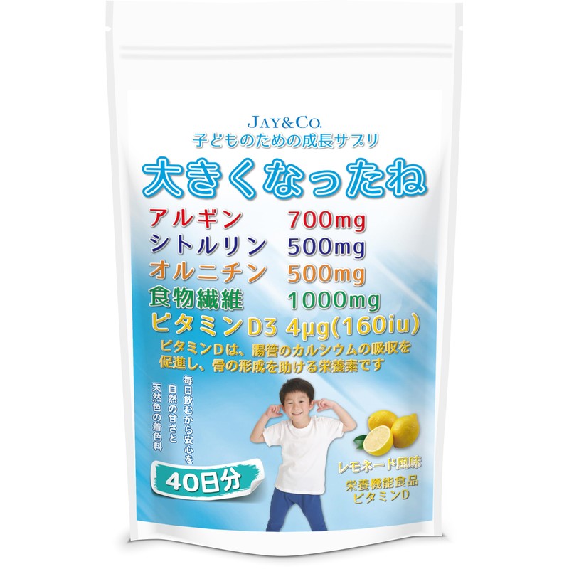 JAY&CO. 子どものための成長サプリ 大きくなったね (人工甘味料、保存料、合成着色料不使用) (レモネード(+ビタミンD), 40回分 250g)