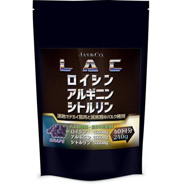JAY&CO. 筋トレ専用サプリ LAC ロイシン アルギニン シトルリン パウダー (グレープ, 40回分)