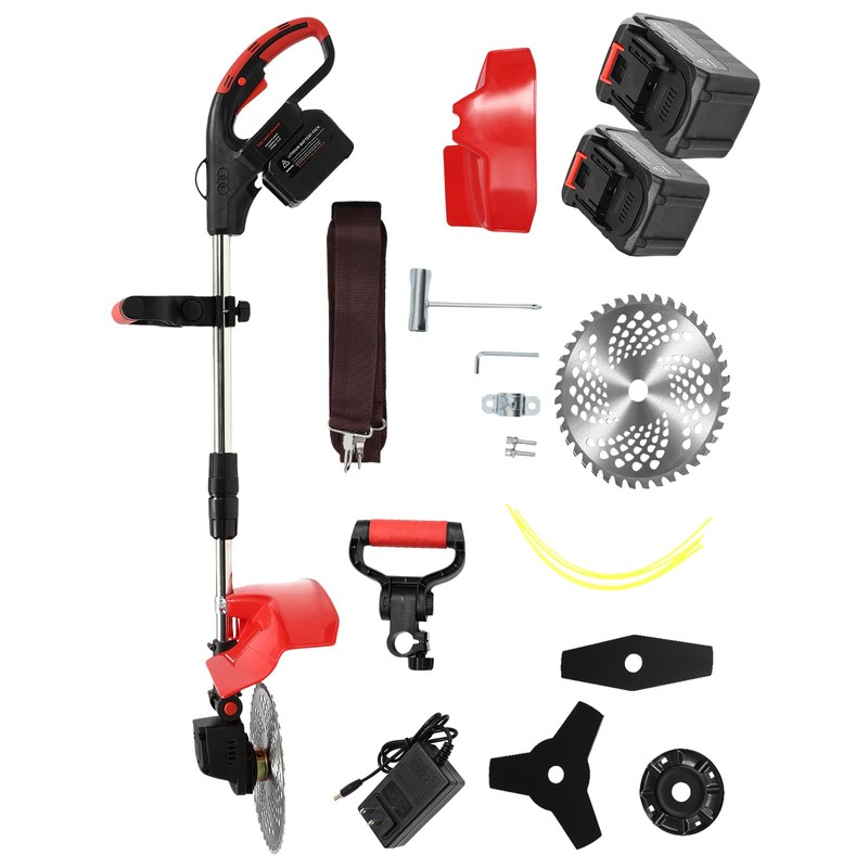 JAYGOVAN Grass Strimmer 1800W Electric Weed Lawn Eater Cordless Grass String Trimmer Cutter W/ 2 Battery Garden Cutter for Family Lawn Mowing, Gardening, Orchard Pruning, Cutting Rice&Wheat