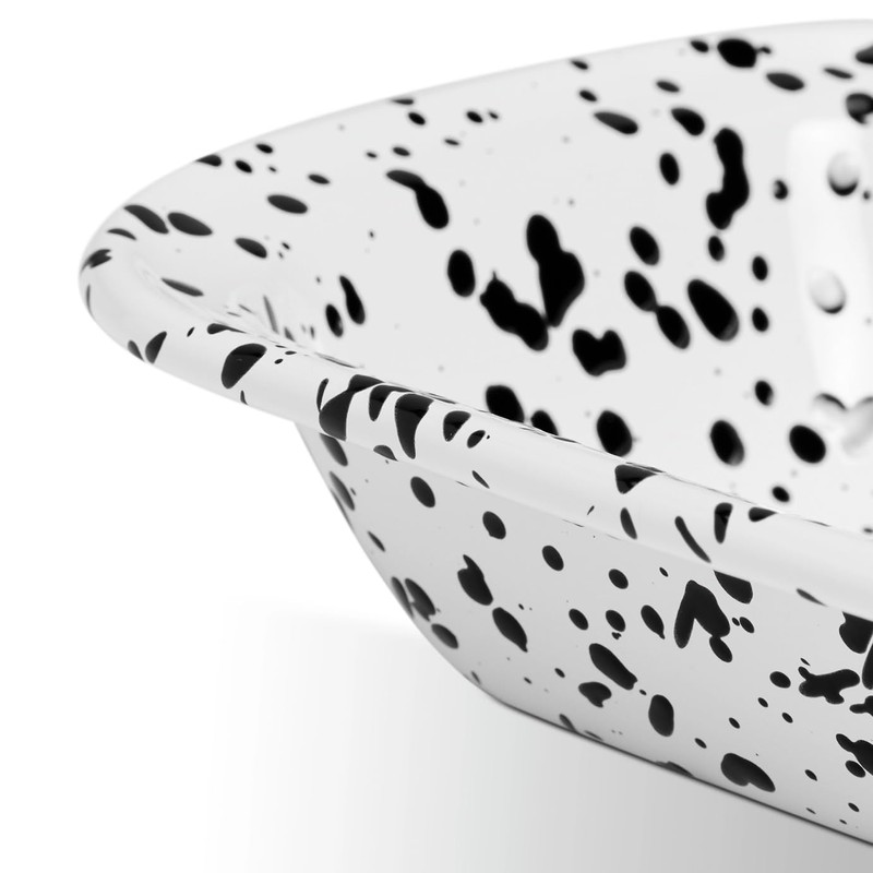 Add a touch of artistic flair to your baking with this stunning 24cm enamel pie dish. The pristine white base adorned with a playful black splatter pattern creates a striking contrast that makes every dish presentation-worthy. Crafted from durable enamel, this versatile dish is perfect for baking everything from traditional fruit pies and savoury tarts to hearty shepherd's pie. The generous 24-centimetre size provides ample space for family-sized portions, while the wide rim ensures easy handling when transferring to and from the oven. The smooth enamel surface not only offers excellent heat distribution for even baking but also makes cleaning a breeze. Whether you're an experienced baker or just starting your culinary journey, this distinctive pie dish combines practicality with contemporary style to enhance both your baking experience and kitchen aesthetics.