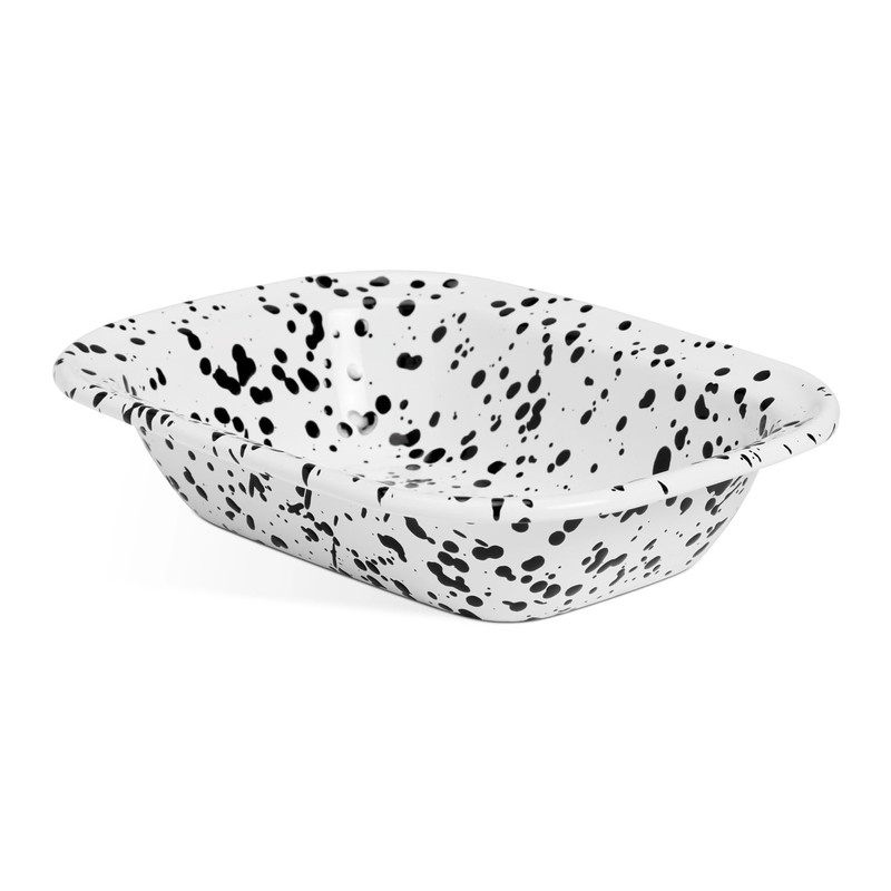 • STYLISH DESIGN: Distinctive black splatter pattern on white enamel creates an eye-catching, contemporary aesthetic