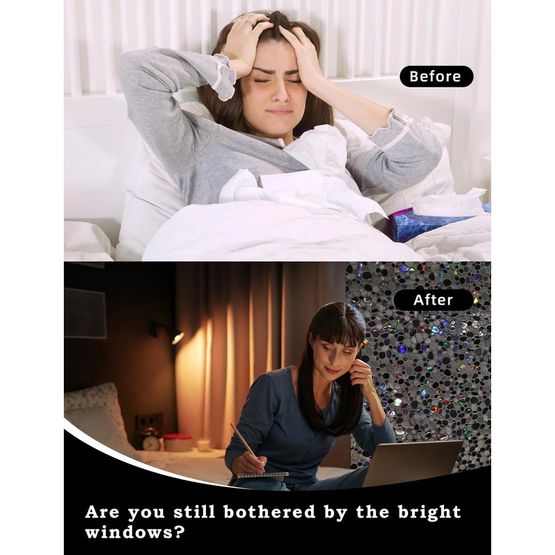 - Static Cling & No Mess No Fuss Installation:No More adhesive mess! Our black out windows film is super-static, easily applied with just water. Best of all, it's reusable,and tears off without leaving a trace