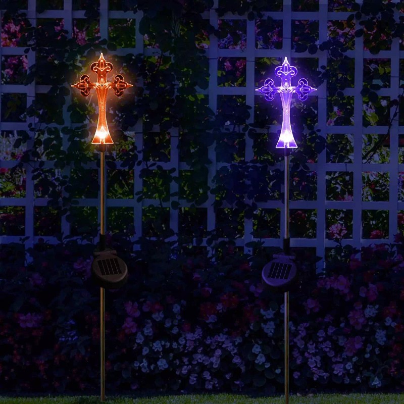 JAYXC HOME 2-Pc Outdoor Garden Solar Cross Garden Stake Color Change LED Lights