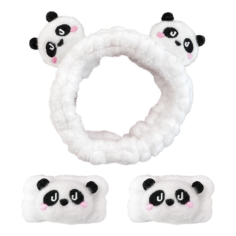 - Plush & Soft Material: Made from high-quality plush fabric, this panda headband and wristband set is ultra-soft and absorbent, designed to keep hair out of your face while washing, cleansing, or applying skincare products.