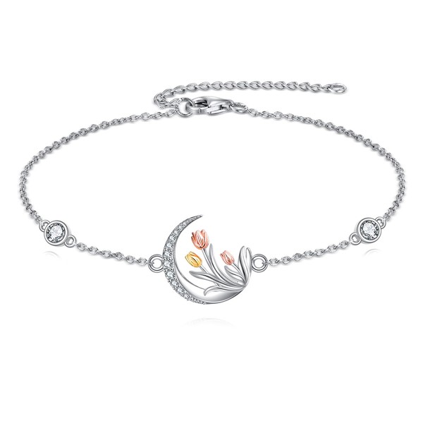 JBAERD Tulip Bracelet Sterling Silver Tulip Bracelet Tulip Flower Jewelry Gifts for Women
