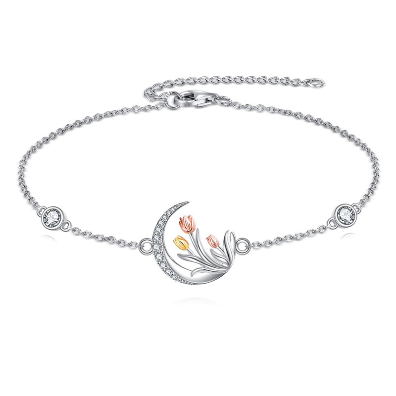 - TULIP BRACELET: Sterling silver tulip bracelet with beautiful and unique design. Outline with simple lines and decorated with zircon stones. Tulips mean bringing happiness and good blessings to the wearer, hoping that the wearer can have a happy life.
