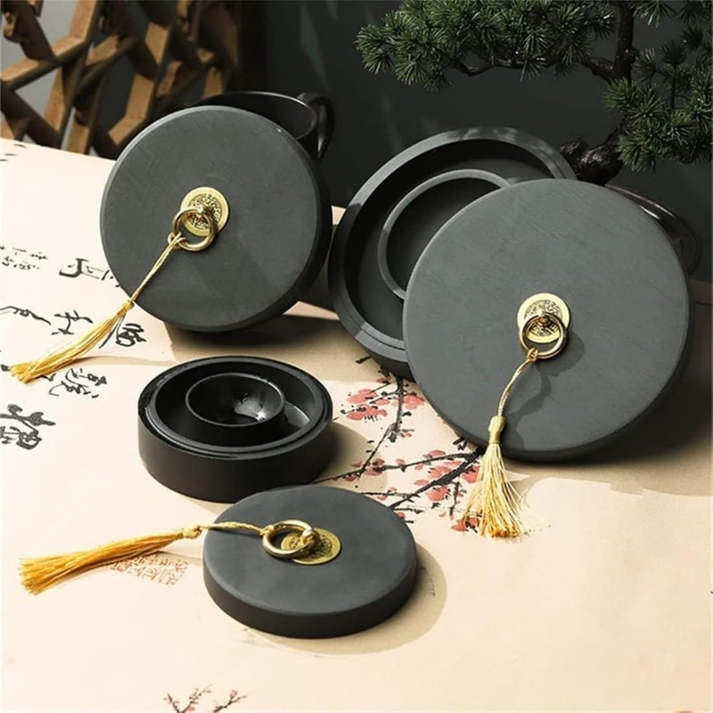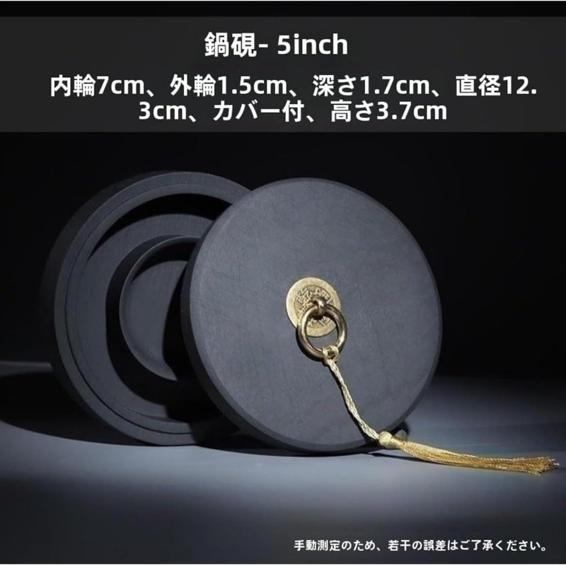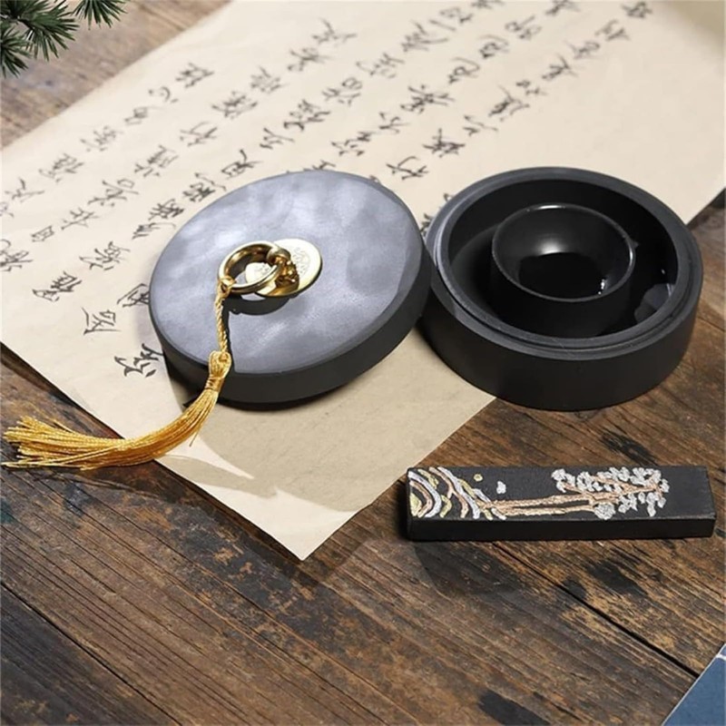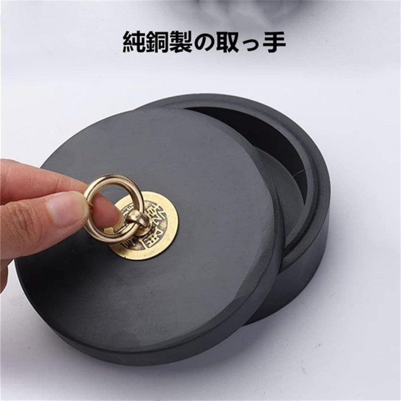 JBJSHHY 硯 墨池 黒 円硯 四角形 歙州硯 天然原石 書道液 書道絵画ツール 書道用品 書道練習 アクセサリー 中国風の書道墨池 書道インクストーン 蓋付き 蒸発防止 乾きにくい 水とインクを同時に入れる 初心者 学生 大人 (4インチ)