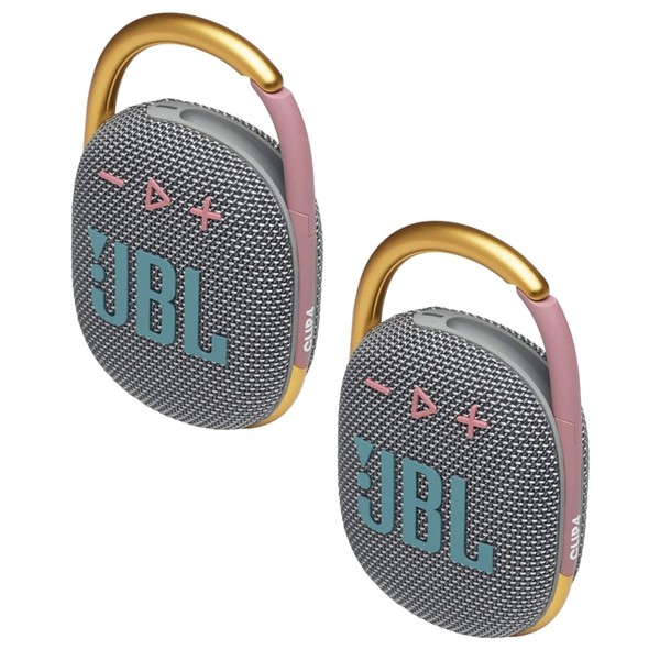JBL 2 Pack Clip 4 Waterproof Wireless Audio Bluetooth Speaker Bundle (Gray)