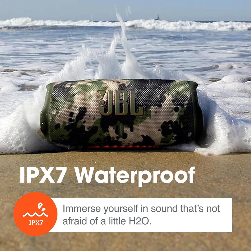 • IPX7 WATERPROOF - Bring your speakers anywhere. Pool party? Perfect. Sudden cloudburst? Covered. Bash on the beach? Charge 5 is IPX7 waterproof and dustproof for fearless outdoor entertainment.