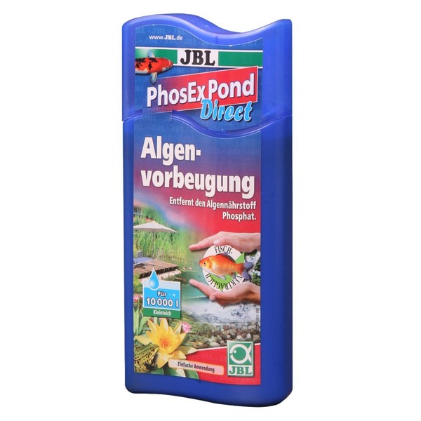- Box contents: 1 x 500 ml JBl phosphate remover for pond, PhosEx Pond Direct, 27394 for 10,000 l pond volume