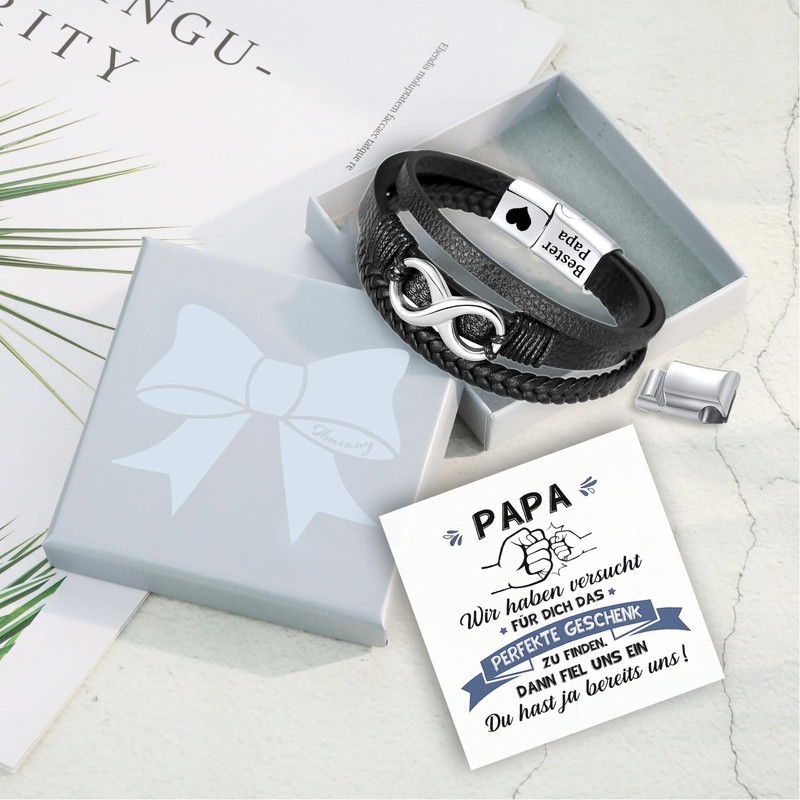 Jbniuay Dad Gifts Father's Day Gift for Dad Bracelet Black Infinity Leather Bangle Infinity for Dad Father Magnetic Closure – Father's Day Gift for Dad, Engraved "Beste Papa", 22.5 cm, Leather