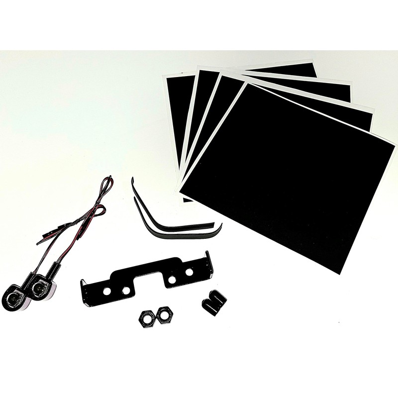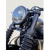 - Made in the USA Triumph custom blinker relocation bracket with mini LED smoked blinkers and vinyl decal fork black out kit