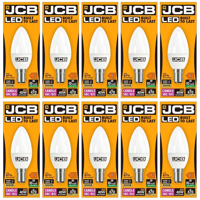 - 10 X JCB 6w = 40w LED Opal Candles - 3000k - Warm White 6w = 40w, Small Bayonet Cap SBC Energy Class A+