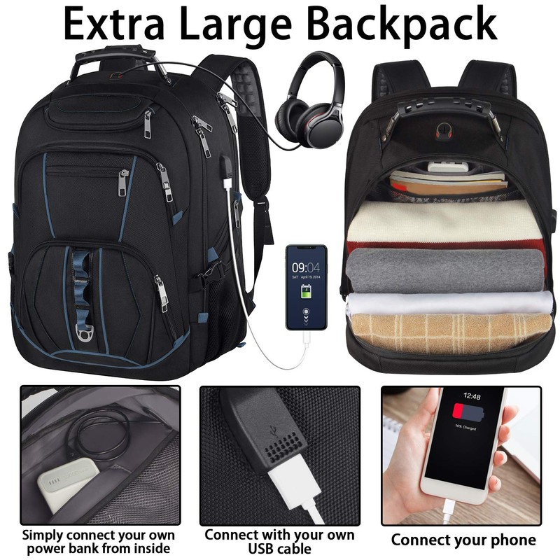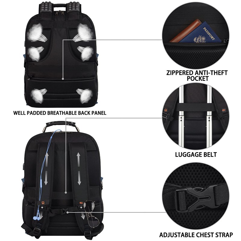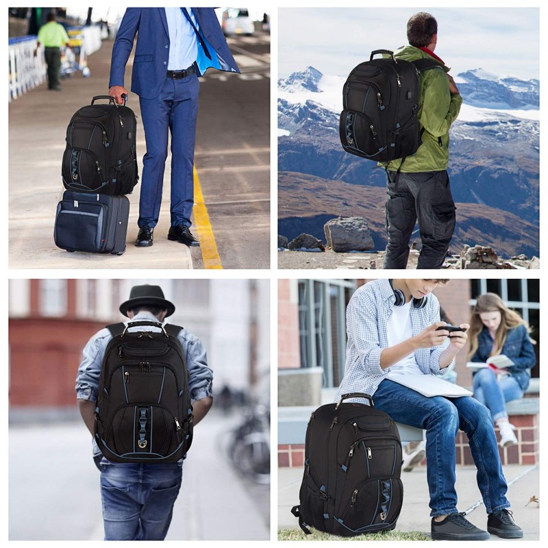 • TSA approved and multipurpose: At checkpoint, unfolds the extra-large backpack freely 90-180 degrees making you quickly through the airport security and keep items tidy, exclusive designed for airplane travel. The big backpack is perfect for indoor/outdoor activities. Served as a durable laptop backpack, large backpack for men large laptop bag or spacious college backpack. Perfect travel gifts for men who like international travel, camping, hiking, and overnight trip.
