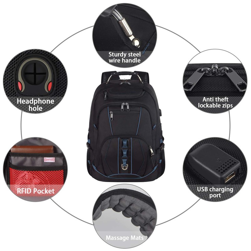 • Practical and convenient: external USB port with set-in charging cable offers convenient charging your cellphone and other electronic devices everywhere. A hole for headphone outside gives easy access to Earphone usage. Also, the college backpack with a sturdy rugged handle with steel cable on the top for carrying. Side compression straps keep the exclusive backpack at whatever size you require.As a Men's/women's backpack,it's a great gift idea for men, can use as Mother's/Father's day gift.