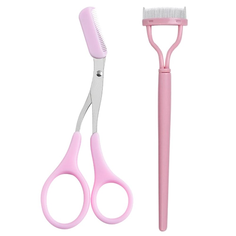 JchEnye 2er-Set Kombinationsbürste, einschließlich Wimpern-Kamm und Augenbrauen-Schere, Edelstahl-Augenbrauen-Schneider mit Kamm, und EIN Werkzeug zum Auftragen von Augenbrauen und Mascara. (Rosa)