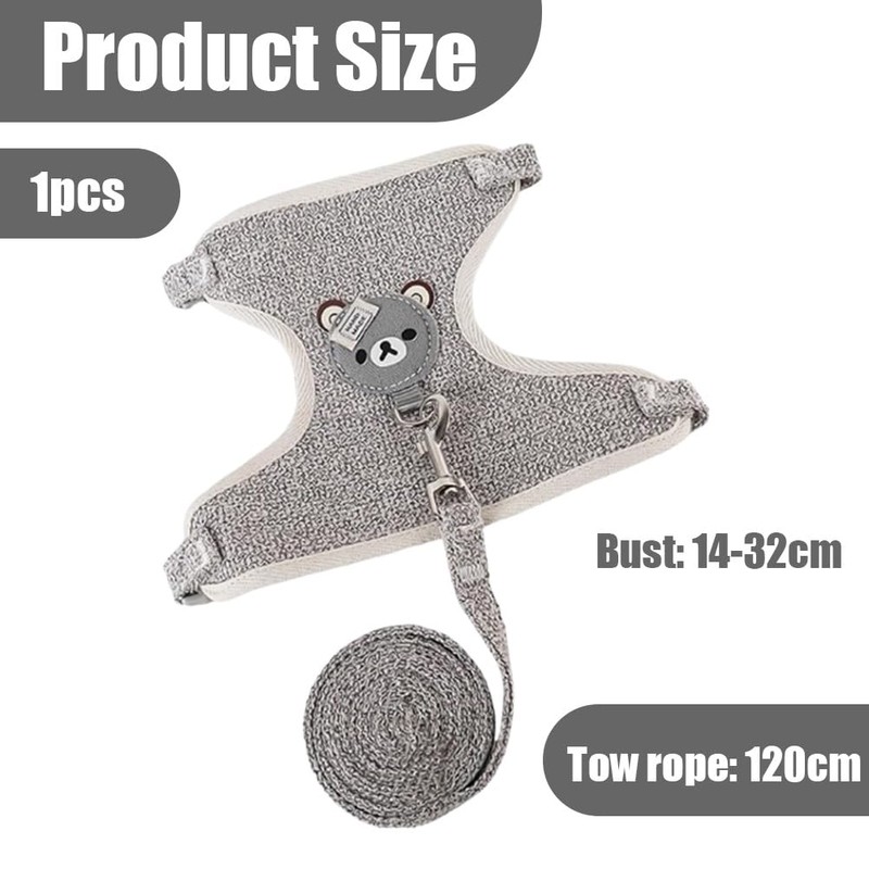 JchEnye Dwarf Rabbit Harnish, Rabbit Leash, Chihuahua Accessories, Collars & Leashes for Small Animals, Adjustable Breathable Lead (Grey)