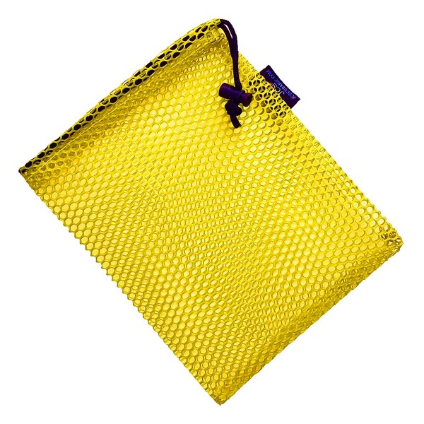 JCS 10x12 Nylon Drawstring Mesh Bag. Durable, Breathable Storage w/Barrel Lock for Shellfish, Fishing, Dive Gear, Yellow