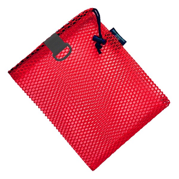 JCS Nylon Mesh Drawstring Bag with D-Ring, Approx. 8inch x 10inch, Red